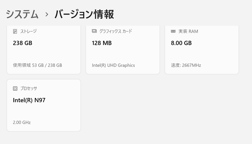 ストレージも238GBとなってますね。。