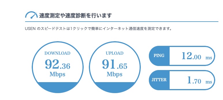 インターネット回線は光です。スピードはこんな感じです。